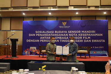 Sebagai penanda resmi kerja sama antara Universitas Ahmad Dahlan dengan Lembaga Sensor Film Indonesia, Dr. Muchlas, M.T. selaku Rektor UAD menandatangani Nota Kesepahaman dengan Ketua LSF yakni Rommy Fibri Hardianto.